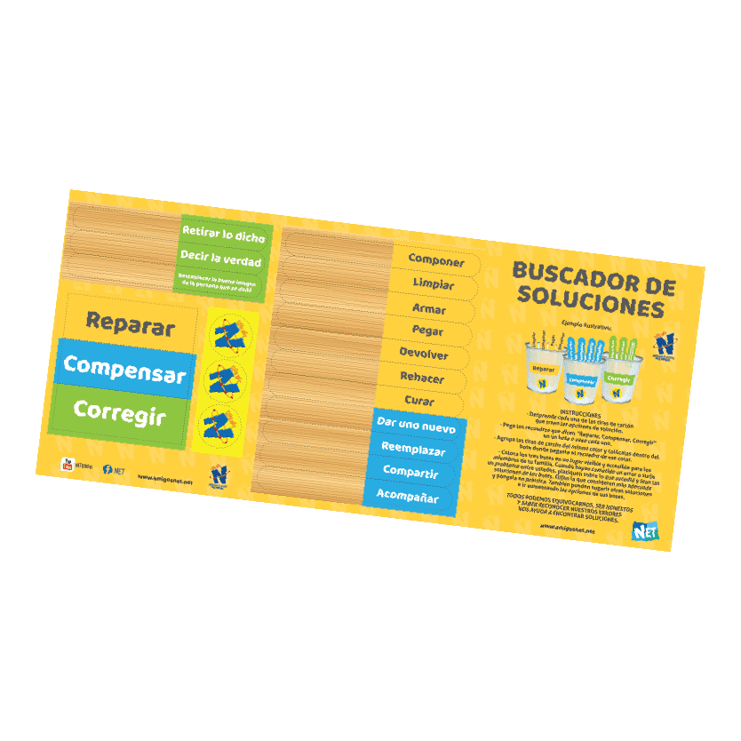 BUSCADOR DE SOLUCIONES (ver video): Desprende y pega las soluciones en los palitos, sepáralas por colores y colócalas en tres recipientes; Utilízalas cuando necesites opciones de solución. https://www.youtube.com/watch?v=4Wi-7owGj3E